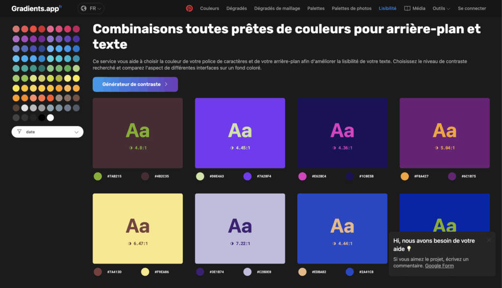 Étape 5 :construire un nuancier fonctionnelde 3 ou 4 couleurs en utilisant l’application en ligne Coolors.