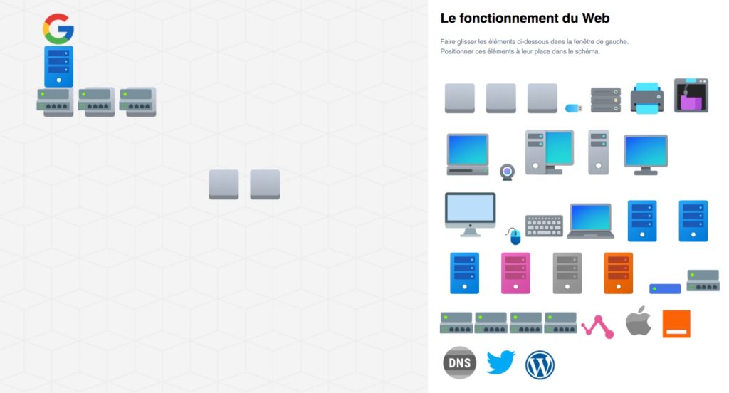 ➜ Voici les consignes à respecter pour positionner les différents éléments constitutifs d’un large réseau informatique.